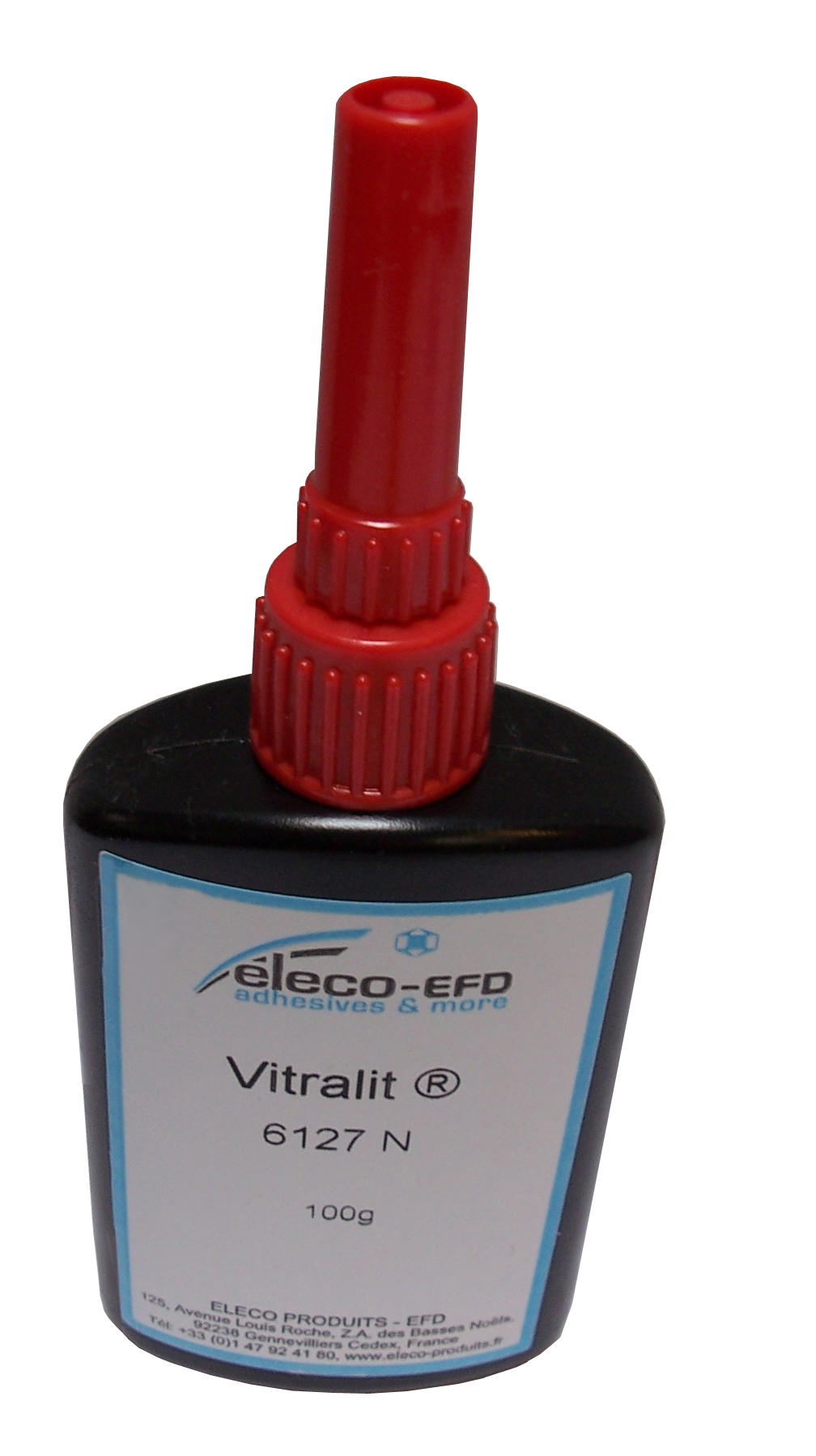 Colle U.V. : résine monocomposante durcissant sous rayonnement ultra-violet sur toute la suface encollée (l un des matériaux encollés doit impérativement laisser passer les U.V.). Excellente transparence. Colle 6127N : collage verre/verre de grandes surfaces (ex : cabochons 822) avec transparence optique et absence de bulles d air. Utilisable pour collages verre/métal, verre/bois non poreux. Contenance du flacon : 100 g