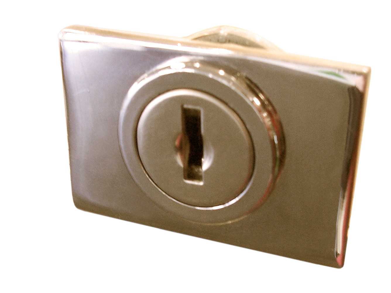 Cam lock 40 x 27 for showcase. 1. Gilt brass. 2. For glass thickness 5 à 10mm. 3. Supplied with dead stop plate and lock barrel, different combinations with 2 keys. 4. Right opening with key removable in closed position. Also exists in single key version (63802A) or without barrel (63820V). Consult us for left opening barrels with multi keys.