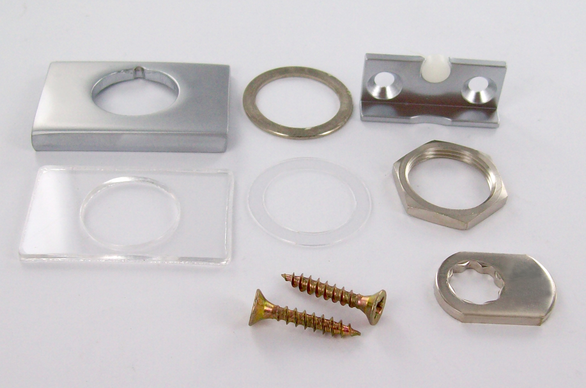 63072H pinces à pivot en laiton, grand modèle, chromé mat, e=10 / 63801Z Serrure batteuse 40x27 s´entrouvant n°1, sans clé, chromé mat / |