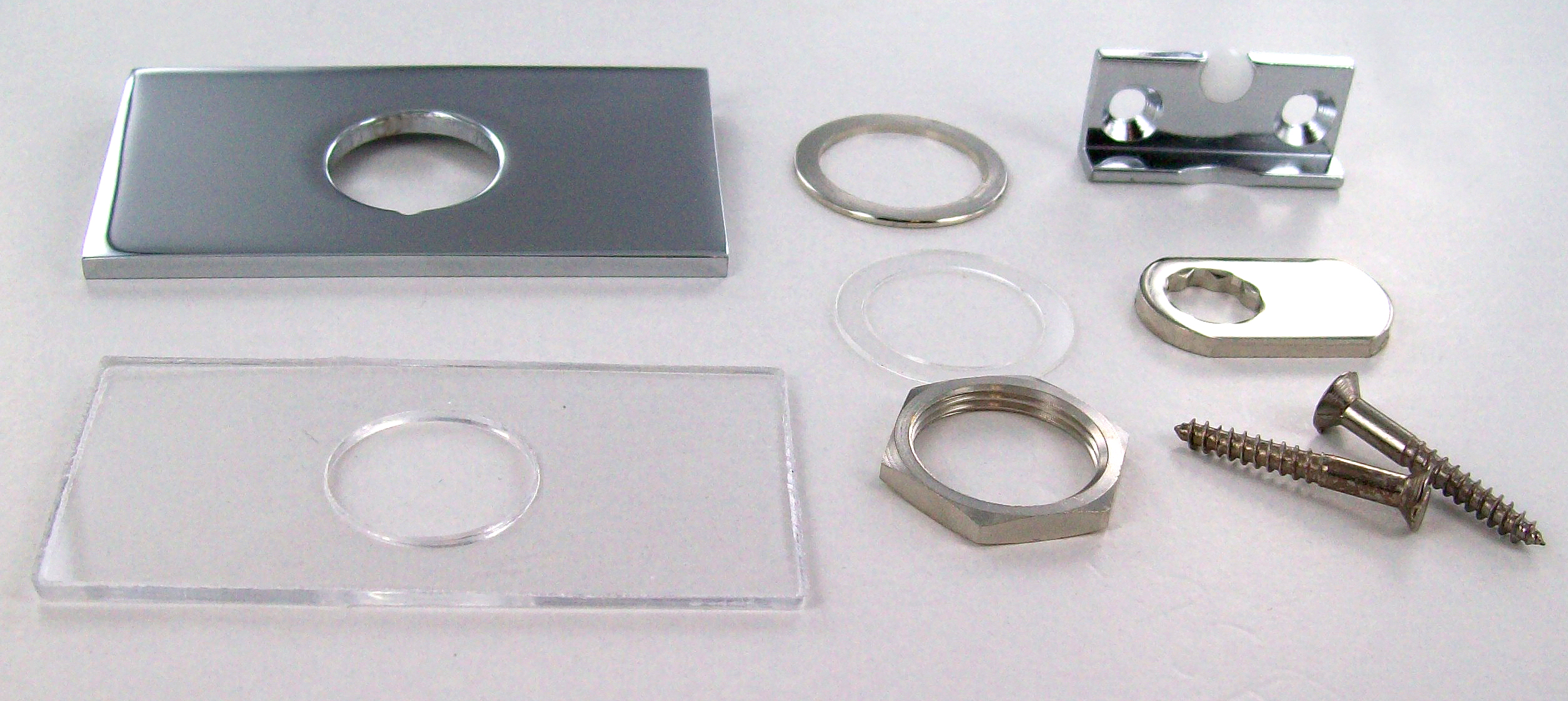 63806F Serrure batteuse 65x36 s´entrouvant n°1 sans clé, chromé / 63815Q Serrure batteuse 65x36 clés variées, chromé / 63969H pentures A.S. sur platine, laiton chromé / |