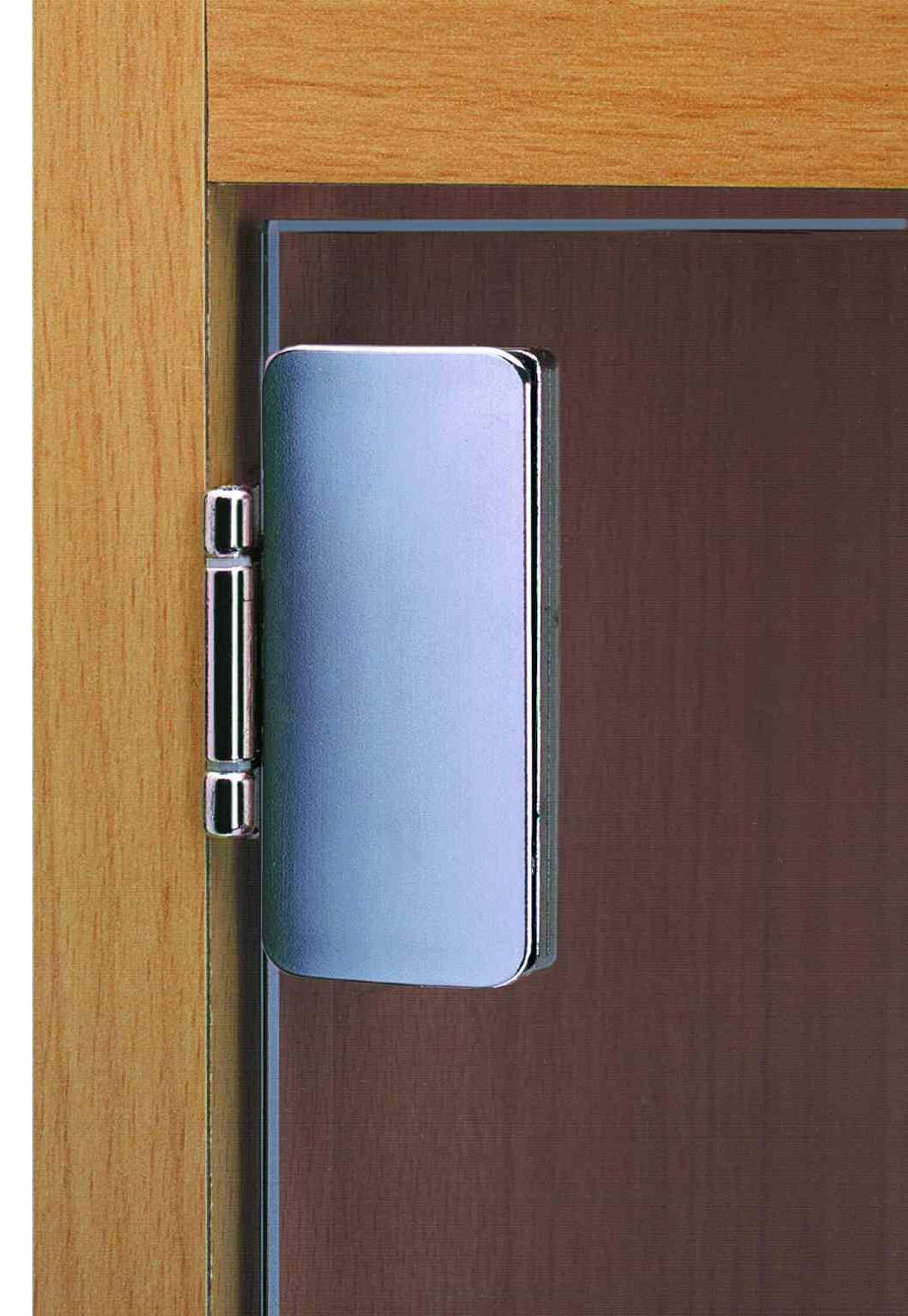 PRÄMETA hinges for 5 to 8 mm thick glass doors with blockage in closed position (useful when the showcase is not secured by a lock, advantageously replaces a magnetised stop). Hinges offer height, width and depth adjustment (Ref. 63925K and 63926L). For wall-mounted door (3 mm overlap without notch or 6 mm with notch) ? 240° opening - or flush-mounted door ? 180° opening -. Maximum load for a pair of hinges 10 kg (see diagram). Zamak with velvet nickel or chrome finish. Packaged individually, for wall/glass installation.