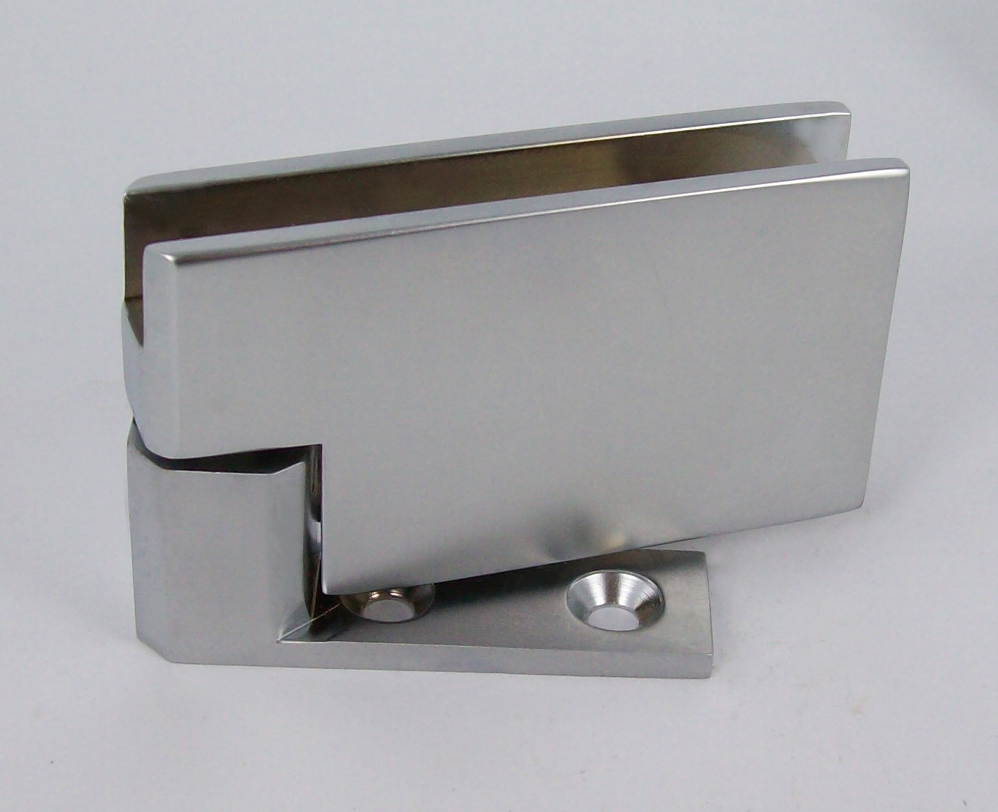 pentures laiton ADLER® haute et basse, gamme "Prestige" à rotation sur bille. Platine à fixer par vis (fournies). Serrage à contreplaque. pour volume d'épaisseur 6 à 8 mm. Avec cales liège. Modèle avec encoche. Chromé mat.