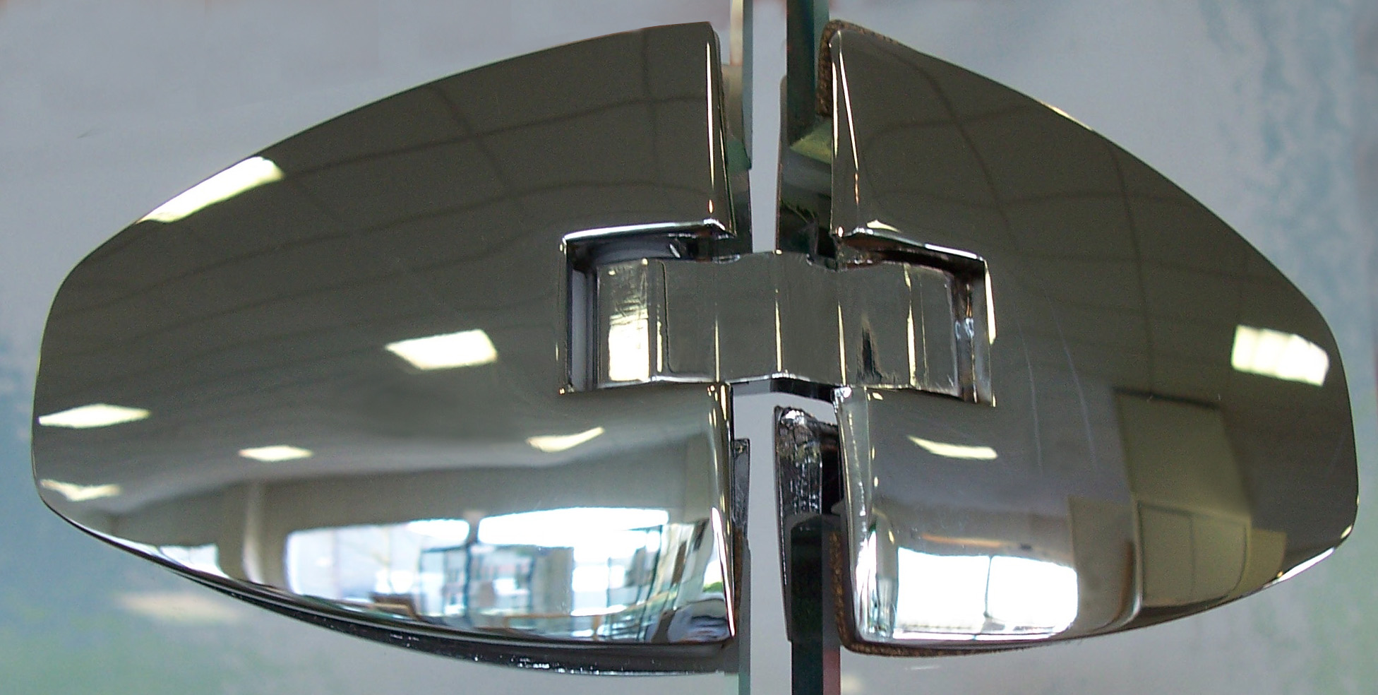 charnières VENUS glace / glace à 135°. Pour glace de 8 mm. Laiton chromé. Les charnières Vénus assurent sur arrêt de la porte en toute position sauf dans une zone de 10° de part et d'autre des positions 0°, 90° et 180°. Pour portillon d'épaisseur 6mm (Vénus 6) ou 8mm (Vénus) ; charge maximum pour une paire de charnières : 25 kg ( H x I : 180 x 70 cm, en glace de 8mm). Livrées avec cales en matière plastique.