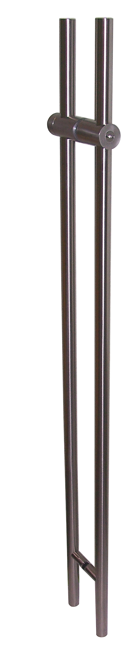 Handle with upper and lower lock, brushed stainless steel, custom heights up to 3,000 mm.