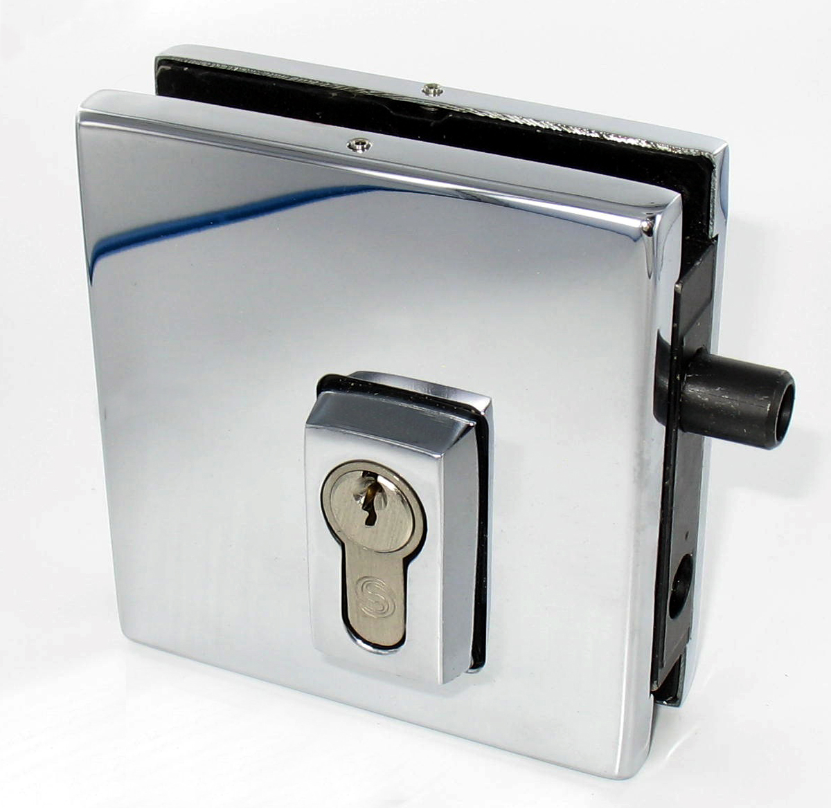 gamme "ELITE" : serrure de milieu anti-effraction, avec protection du cylindre ; clés différentes. Décor : chromé.