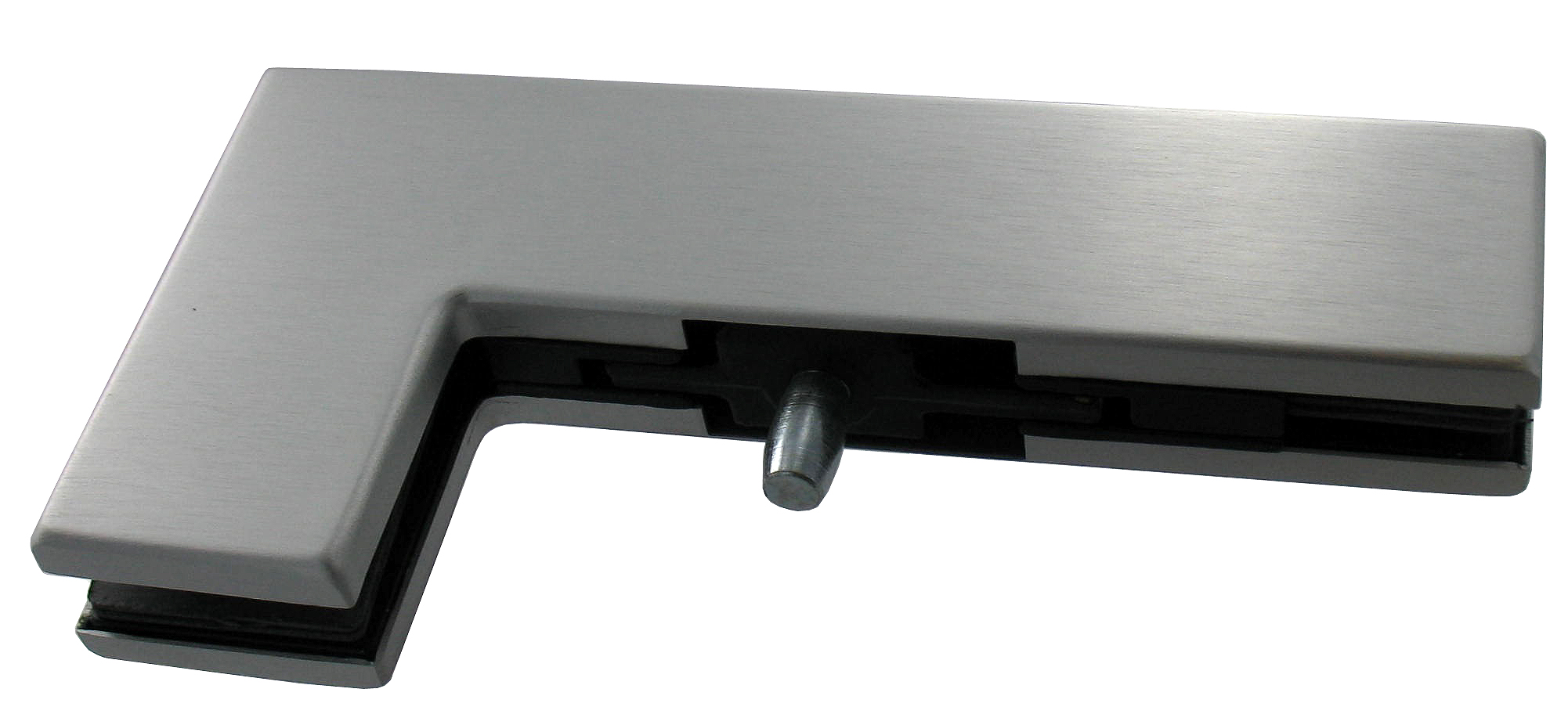 gamme "ELITE" : pince glace fixe latérale/imposte (côté penture) avec pivot pour porte double action. Décor : naturel.