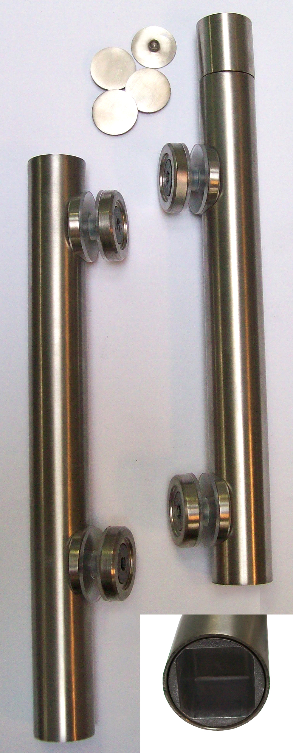 pentures adlock haute et basse Ø25 pour ferme-porte axe carré inox brossé