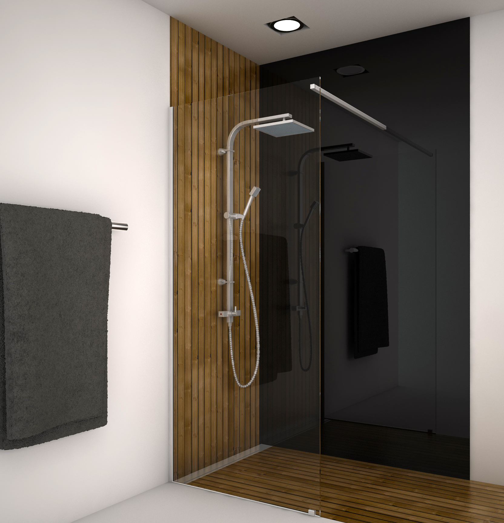 shower screen WI niche 1 fixe square stiffener anodised aluminium BSS effect