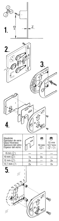 l'épaisseur de glace ajouter les cales entre le coffre de serrure
