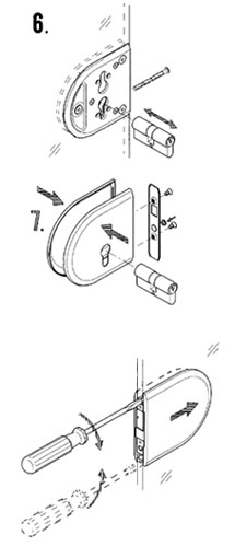 les caches. Monter le cylindre de serrure. Enfoncer la butée