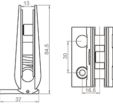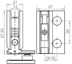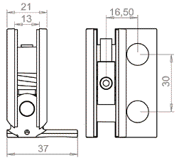 Les gammes de charnières à rappel : CAPSIÒ et REVERSI en bronze d’aluminium d’une part et CAPSINOX en inox d’autre part, sont complétés par des pinces (voir 503) et boutons originaux de même design, matière et décors. Plusieurs astuces dans la conception de ces pièces rendent leur pose particulièrement aisée malgré leurs formes carrées. Perçage du verre Ø12mm.