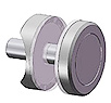 Exemple de poignées à serrure intégrée : en diamètre 25, 35 et 45 mm.