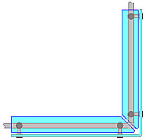 De préférence avec des fixations déportées (entretoi-ses de 40 mm en standard), la même penture en coin peut servir à connecter 2 éléments perpendiculaires de la cloison. |