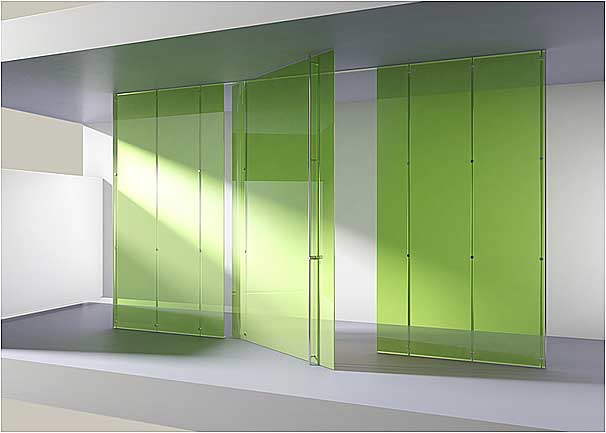 Des cloisons originales peuvent être réalisées en agrafant les glaces sur des pentures pleine-hauteur. Plusieurs pentures étant alors fixées sur une glace, elles perdent leur effet de pivot mais confère à la glace ainsi fixée une grande raideur dans la hauteur qui peut ainsi être hors norme.