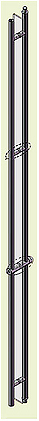 La gâche sur imposte utile dans le cas d’une poignée pleine-hauteur à serrure intégrée fermant en 2 points, forme comme une poignée qui prolonge la poignée de la porte. Le tube formant gâche est donc fixé à l’imposte par l’intermédiaire d’entretoise et en est donc écarté de 40 mm. La liaison avec le dormant se fait alors via un connecteur déporté. |