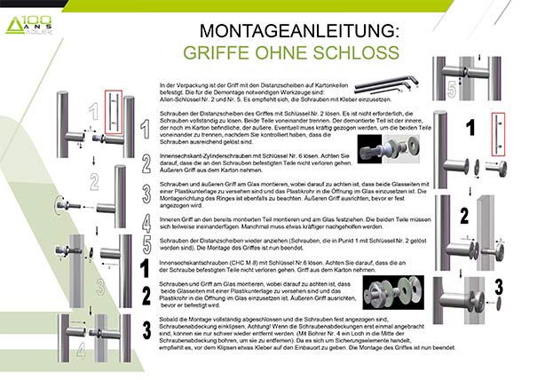 Die einfachen oder doppelten Griffe können mit einer beliebigen Anzahl Distanzscheiben ausgestattet werden. Sie können in ein Sicherheitsschloss oder eine einfache Knopfverriegelung, einen Feuerwehr-Dreikant sowie eine Vielzahl Kombinationen dieser Lösungen integriert werden. Sie können kurz sein oder sich über die gesamte Türhöhe erstrecken, senkrecht oder waagerecht als Handtuchhalter befestigt werden...