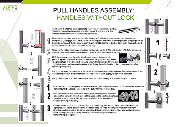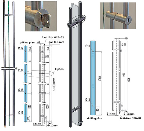 The single or double handles have a number of spacers. They may integrate a security lock or a simple button or triangular key lock to name just a few, with many combinations of these solutions. They may be short or full door height; attached vertically or horizontally like a towel rail.