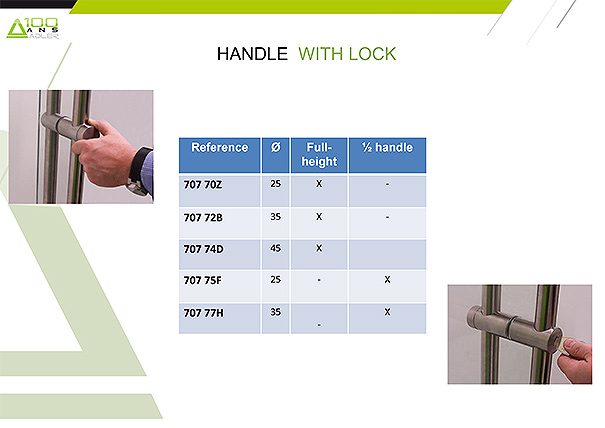 Example of handles with integrated lock: in diameter 25, 35 and 45 mm