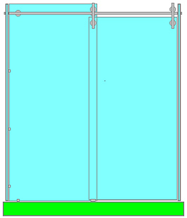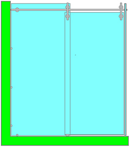 Dans les modes de construction standard en « U » et en « L », avec une porte coulissante, le rail est un raidisseur glace – glace ou mur – glace : raidisseur utilisable seul pour fixer, raidir et sécuriser un panneau de séparation en verre. Le tube est coupé à la longueur de l’ouverture totale de la baie corrigée de l’épaisseur des rondelles intercalaires sur verre. Il est fixé au travers de la glace en retour par un insert expansible, une rosace à clipser et une vis inox ; et dans le mur par un insert à visser fixé dans le tube par un même insert expansible.