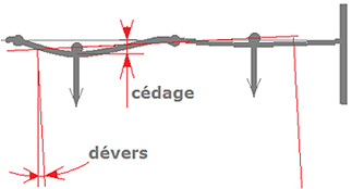 Le dévers se traduit par des basculements oscillants de la porte et par un frottement apparent supplémentaire qui résulte de fait de la superposition des effets de l’inertie de la porte dans son mouvement oscillatoire et de la remontée locale des pentes causée par la flexion du rail. |