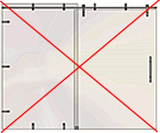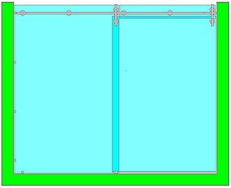 Pour une largeur de façade supérieure à 2m30, si la largeur de porte demeure inférieure ou égale à 1m20, il suffit de multiplier le nombre de points de fixation du rail sur la glace fixe. Idéalement, la symétrie sera respectée dans les points de fixation de part et d’autre de la zone de recouvrement de la porte et de la glace fixe. |