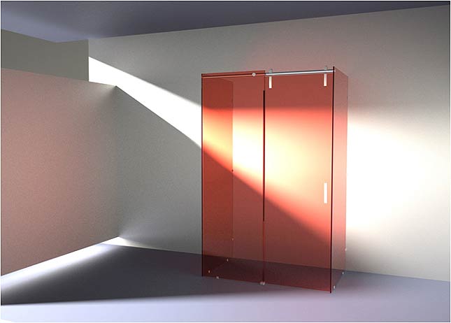 | Avec ADSLIDE, toutes ces contraintes ont été éliminées. Grâce à la force des points de fixation ADSLIDE du rail sur la glace fixe, jusqu’à une largeur de 2m30 environ – comme ici dans le cas de cabines réalisées pour un grand hôtel – l’essentiel des pièces disparaissent,