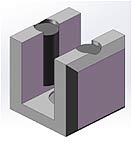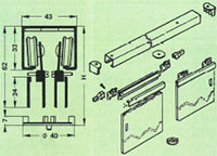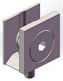 Construction en « I » - c’est-à-dire insérée en niche - : le rail tubulaire ne retient dans ce cas plus de paroi latérale ; il est enfiché dans chacun des murs de côté. Ces points sont des appuis fermes des extrémités du tube. Ils sont constitués d’une crapaudine (douille recevant l’axe haut d’une penture de porte battante) ADLOCK équipée d’un palier sphérique avec un débattement angulaire de 5° qui facilite grandement le montage et compense d’éventuels défauts de verticalité du mur à l’endroit de la fixation ; et d’un insert d’enfichage qui est à insérer en force dans l’extrémité du tube rail à recouper sur mesure et qui comprend un système d’axe rétractable – rétracté pendant l’insertion entre les 2 crapaudines extrêmes puis automatiquement ressorti par rappel ressort lorsqu’il est en regard du palier -. La fixation dans les murs de la niche des 2 crapaudines est critique. Les efforts d’arrachement supportés par ces pièces sont importants : sans surcharge accidentelle, compter 2 à 3 fois le poids de la porte. |