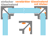 - eine perfekte Lastverteilung des fixen Glaselements über die gesamte Länge seiner Auflagefläche möglich, womit ein Lösen oder eine Delaminierung des Glases infolge lokaler Druckkonzentration an der Kante verhindert wird. |