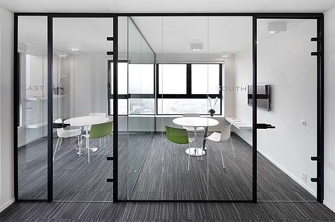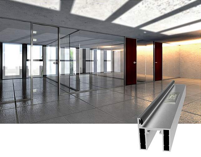 Für eine noch feinere Konstruktion lässt sich aber auch dasselbe Profil am Boden wie an der Decke verwenden (Art. Nr. 73505G). Dann beträgt der Glaseinstand im oberen und unteren Profil 13 mm, und die Höhe des Glaselements entspricht dem Boden-Decken-Abstand, abzgl. 40 mm.