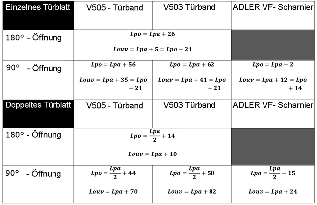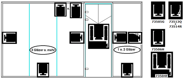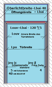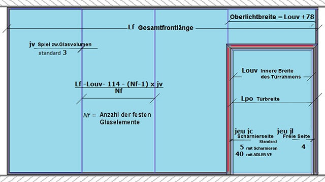 Bemessung der fixen Wandelemente, Türen und Oberlichter in der Breite: |