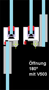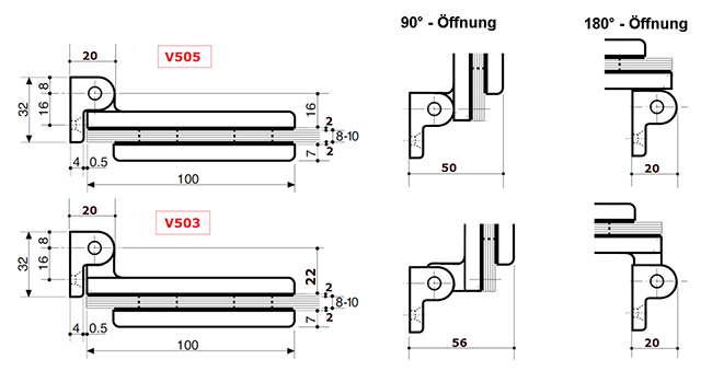 Das Paumellenband V503 bietet einen stumpfen Winkel, der eine Türöffnung bis 180° zulässt. |