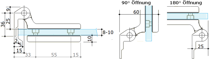 Umfasst die fixe Wand aber mindestens 3 fortlaufende Glaselemente, muss das Halteprofil nicht verwendet werden. Zur Vereinfachung der Montage empfiehlt sich allerdings ein U-Profil. |
