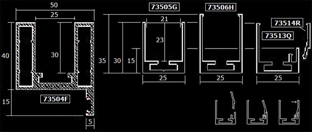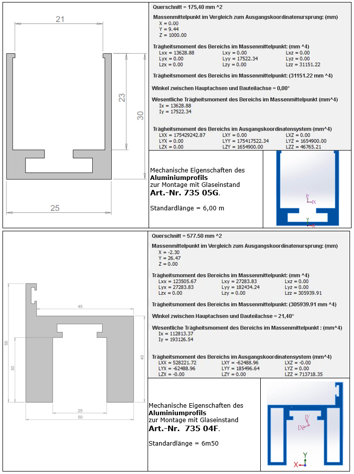 Idealerweise ist das untere Profil feiner: Außenhöhe 30 mm, Einbautiefe 23 mm (Art.-Nr.: 73505G).