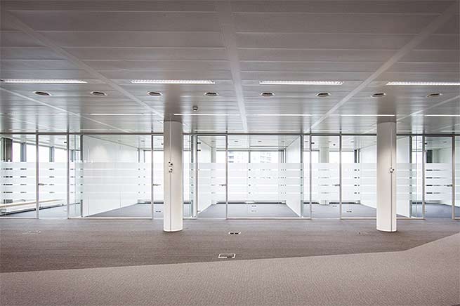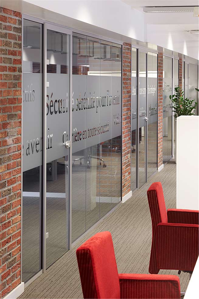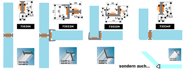 Je nach dem, wie viele fixe Glaselemente montiert werden sollen, kann es unter Umständen erforderlich sein, am Ende der Front ein Profil als Halteleiste (73513Q + 73514R) zu montieren, um das letzte Element einsetzen zu können. Werden nur 1 oder 2 fixe Glaselemente für eine Trennwandkonstruktion verwendet, ist der Einsatz einer solchen Halteleiste unabdingbar: Es empfiehlt sich, diese im Ständer am Wandende zu platzieren, ggf. auch am anderen Ende gegenüber der Leiste, die bereits im Türrahmen inbegriffen ist. Das am Schluss installierte Glaselement wird immer in das als Halteleiste konzipierte Profil eingeklemmt.