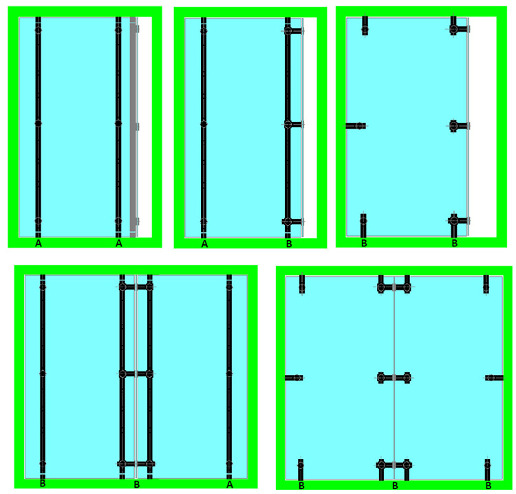 Les connecteurs ADLOCK sont constitués en standard d’une partie tubulaire de diamètre 25 mm et d’un ou de plusieurs points de fixation ADLOCK de diamètre 30 mm. Les règles professionnelles préconisent que les points de fixation doivent démarrer à moins de 200 mm des coins et séparés entre de moins de 800 mm à la verticale et de moins de 600 mm au sol. |