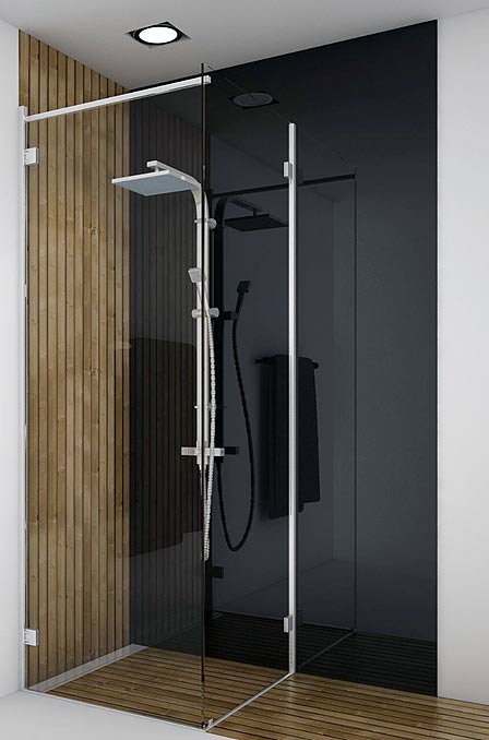 | When the angle partially forms a niche the stiffener is required for the lateral glass exceeding 30 cm |