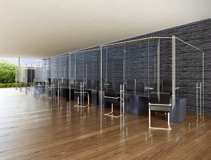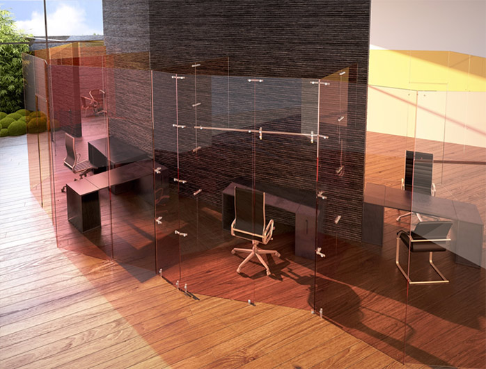 | The stiffener is not fixed in the wall but directly screwed on the fixed glassl: a consequent gain in time and risk of installation, a reliability, a resistance and a very improved durability of the installation. |
