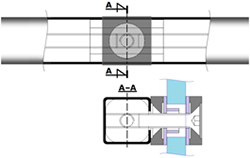 When the fixed glass façade must be wider than 30 cm, it is recommended to stiffen it at the top. A adjustable stiffener makes it possible to limit the encroachment on the volume of the cabin.
