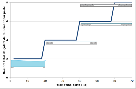 | Pour assurer une stabilité maximale, les galets devront être répartis à chacune des 2 extrémités du profil (pas de galets au milieu) |