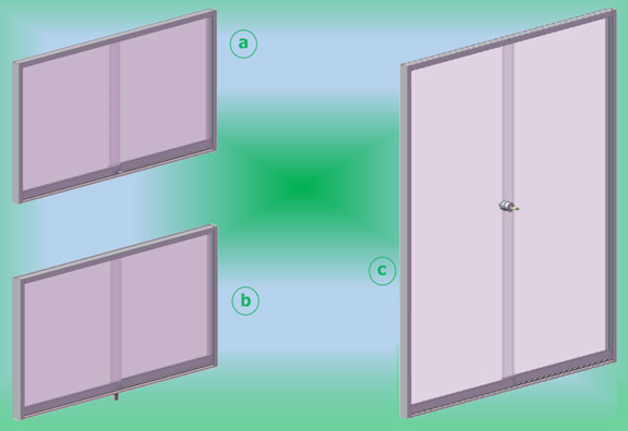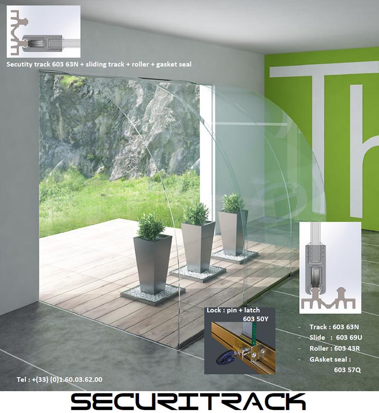 | The 3 models below illustrate a part of the possible variants of SECURITRACK sliding door installation. All using vertical tracks to : 1) to hide the defects of squareness of furniture 2) to secure the closure of the window against the hooking and bending of the doors 3) to protect the window of dust with eyelashes PVC joints. |